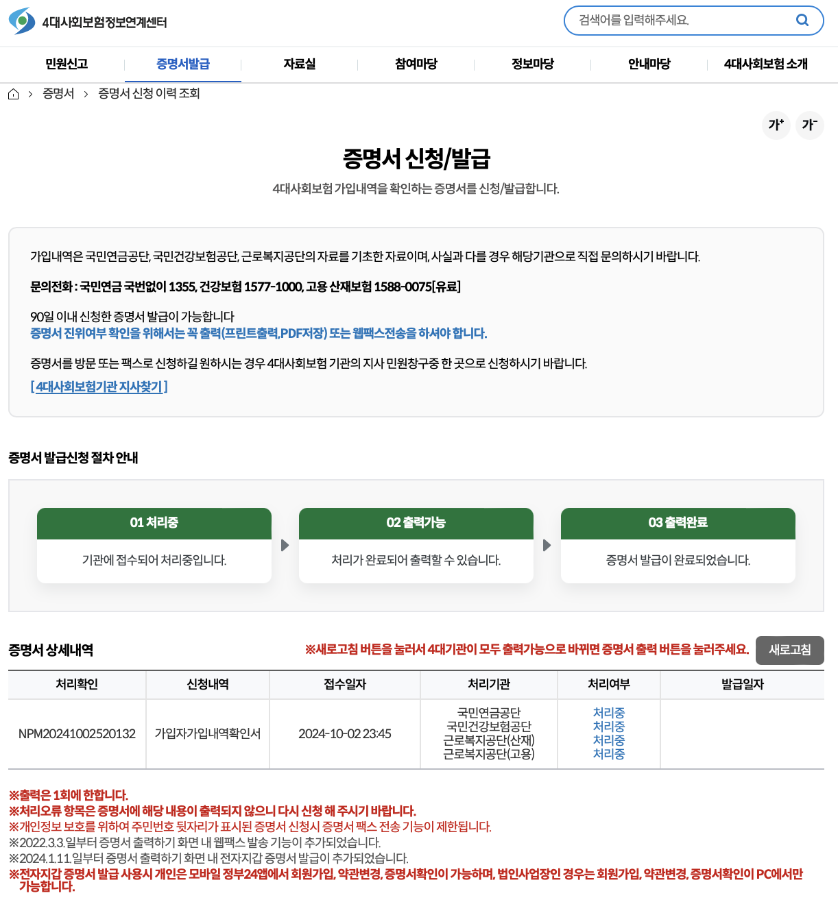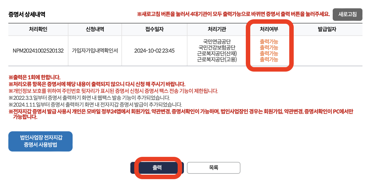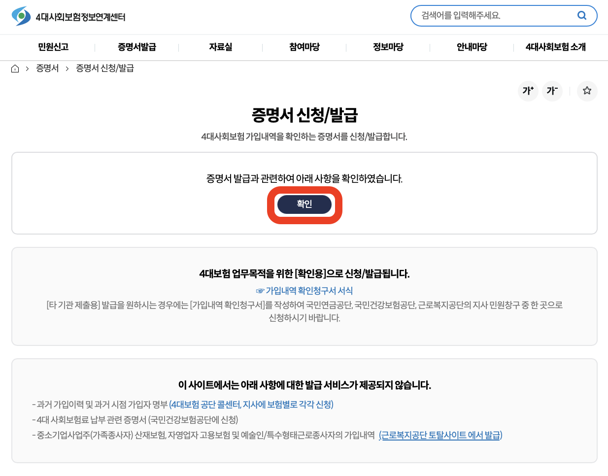 사업장 가입내역확인서 발급시 주의사항