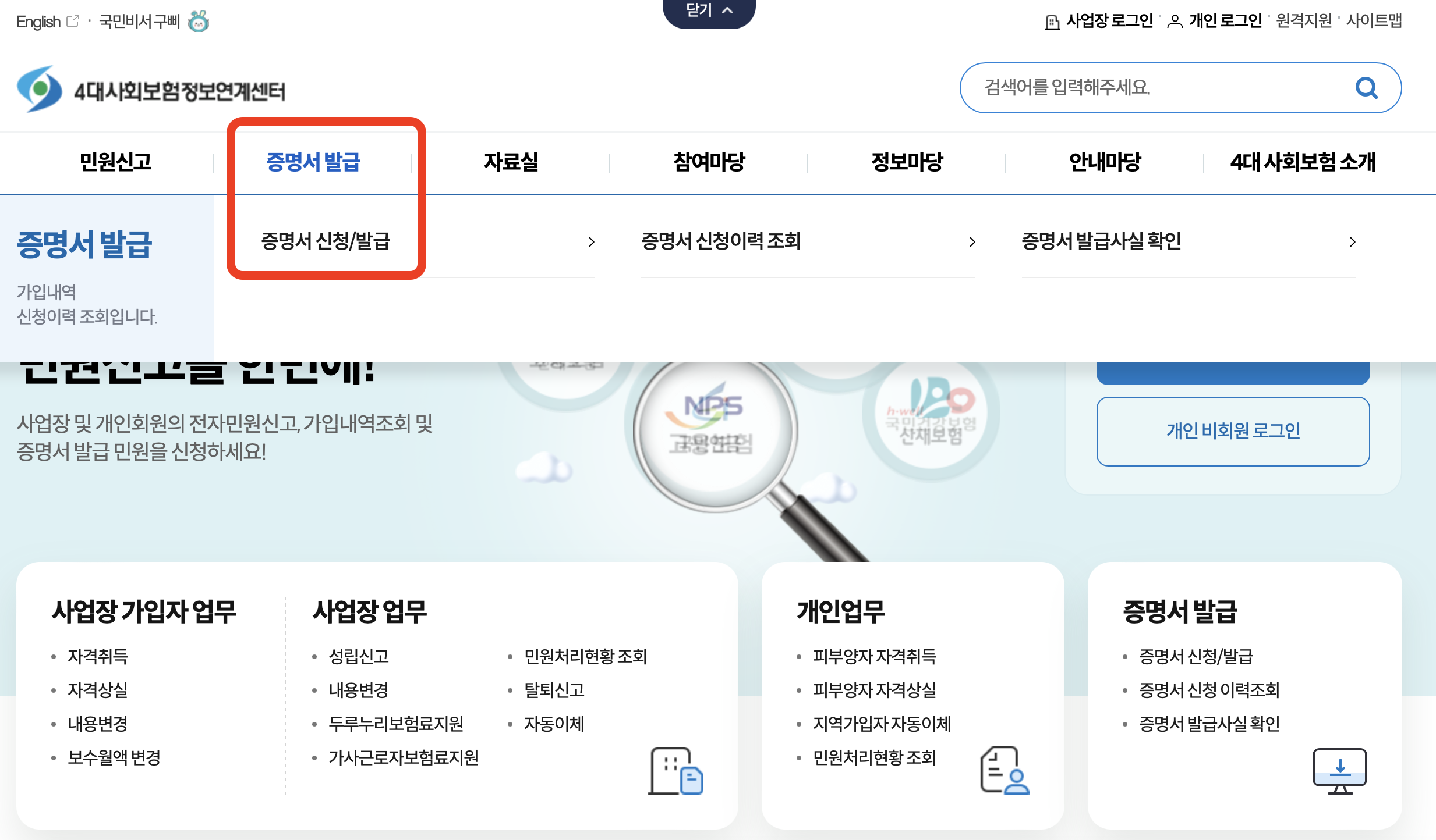 4대보험 사업장 가입내역 확인서 발급방법