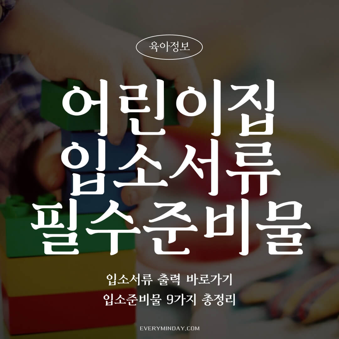 어린이집 처음보내시는 분이라면 입소준비를 꼼꼼히 하셔야 문제없이 입소를 할 수 있는데요, 이번글에서는 입소에 필요한 서류와 준비물을 총정리해서 알려드릴테니 이대로만 준비하시면 됩니다. 단 어린이집별로 추가요구하는 서류가 있을 수 있습니다.