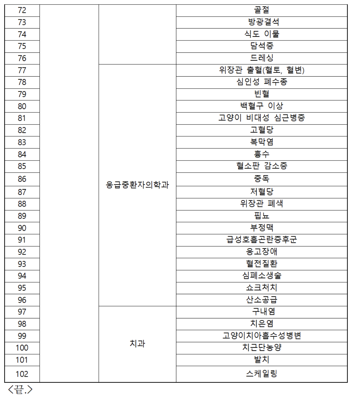 진찰 및 입원관리, 조제/투약(전체), 영상진단의학적 검사 및 내시경 검사 등이 면세 항복으로 추가되며, 구토, 설사, 기침 등 일반적인 증상에 대한 처치와 분야별 다빈도 진료항목등에 대한 치료도 면세가 될 예정입니다. 아래는 대한수의사회 가이드라인으로 참고하시기 바랍니다.