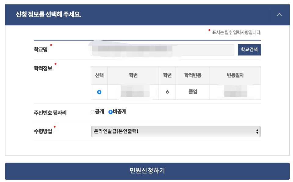어릴적 졸업하며 받았던 생활기록부 기억하시나요? 창고에 박혀 찾아보기 힘들어 궁금해도 보지 못했던 생활기록부를 간편하게 조회 발급할 수 있는 방법이 있습니다. 생활기록부는 학교생활기록 관리지침에 따라 준영구 보존되는 기록물 입니다. 따라서 학교장은 졸업 후 8년동안 학교에서 생활기록부를 보관 관리를 하게됩니다. 생활기록부는 학교 생활과 태도 및 변화를 기록한 보고서로 교사가 직접 기록한 기록물 입니다. 보통 대입전형 및 회사 취업시 생활기록부를 발급받아 제출하게 됩니다. 오늘은 간단하게 생활기록부를 발급받는 방법을 알아보겠습니다. 링크로 접속하셔서 아래 순서에 따라 발급받으시기 바랍니다.
