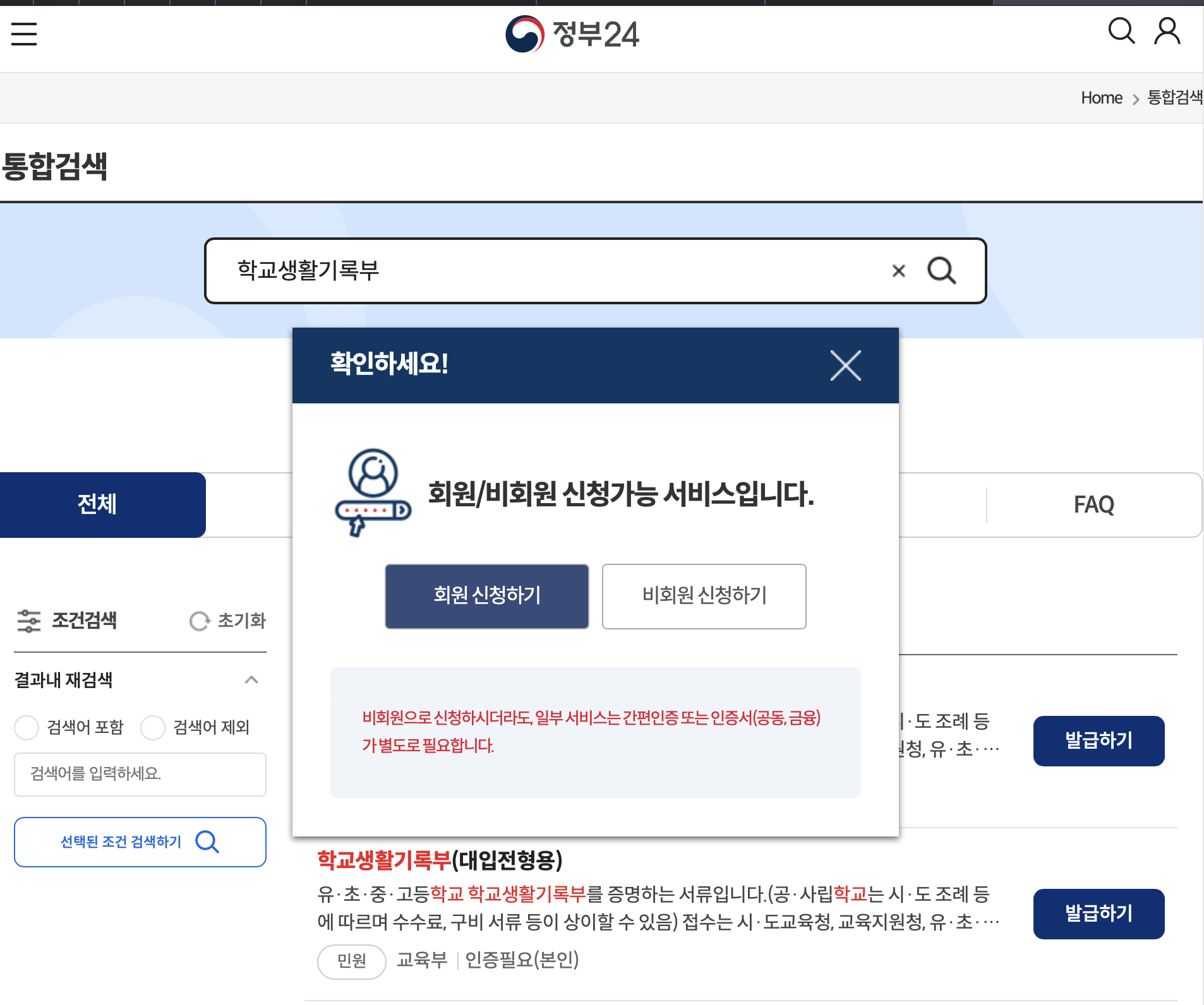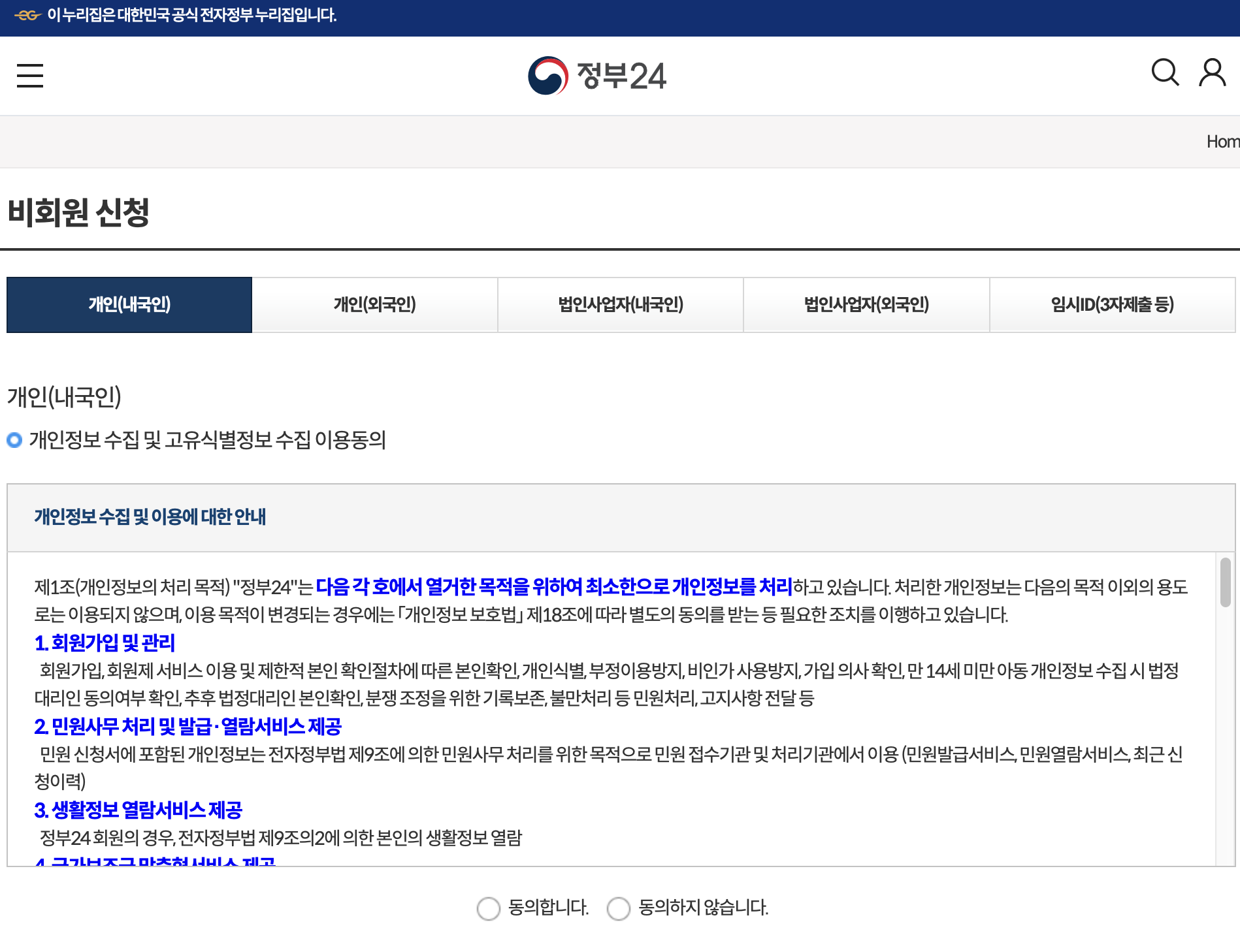 2. 정부24 회원인분들은 회원으로 발급선택하여 로그인, 없는 분들은 비회원으로 클릭해주세요.