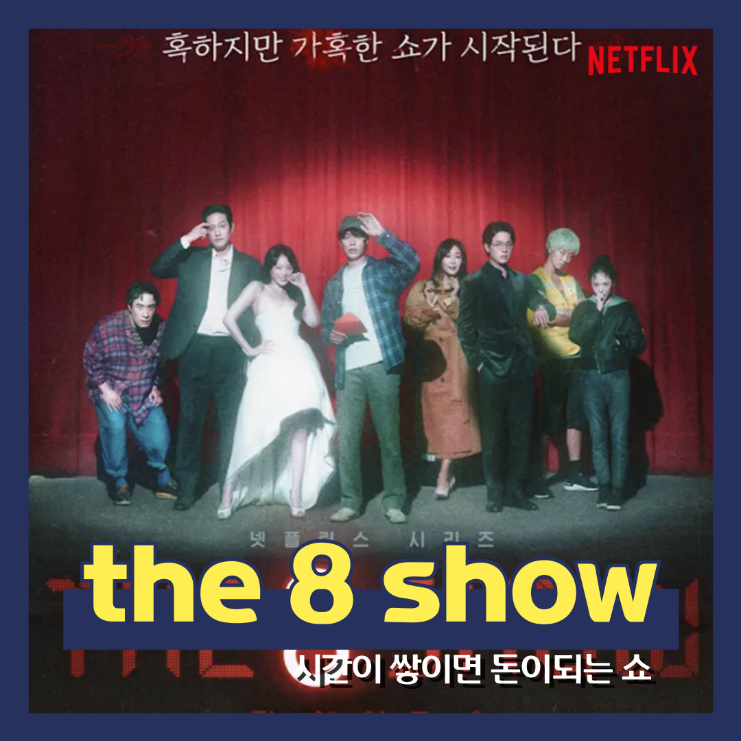 8인의 남녀가 8층으로 나뉜 비밀스러운 공간에 갇히고 '시간이 쌓이면 돈을 버는' 쇼가 시작된다. 협력과 대립, 반목과 배신을 거듭하는 참가자들. 그들 사이에서 원초적 욕망이 격돌한다. 고수익 보장, 숙식 제공, 정원 8명, 그리고 필요한 건 오직 ‘시간’ 뿐인 ‘The 8 Show’에 초대를 받는 8명의 참가자들. ​‘시간이 흐르면 돈이 쌓인다’는 단순한 룰 아래 이들은 8개의 층으로 나뉘어진 비밀스러운 공간에서 협력과 대립, 배신을 거듭하며 희로애락을 맛보게 된다.
